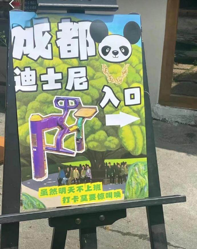 网友们听了这首歌曲后,纷纷围观该健身器材场地,打卡并模仿MV中的动作和口号,将其命名为“成都迪士尼”。这一梗在网络上迅速传播开来,在社交媒体上引发了热烈讨论和关注。